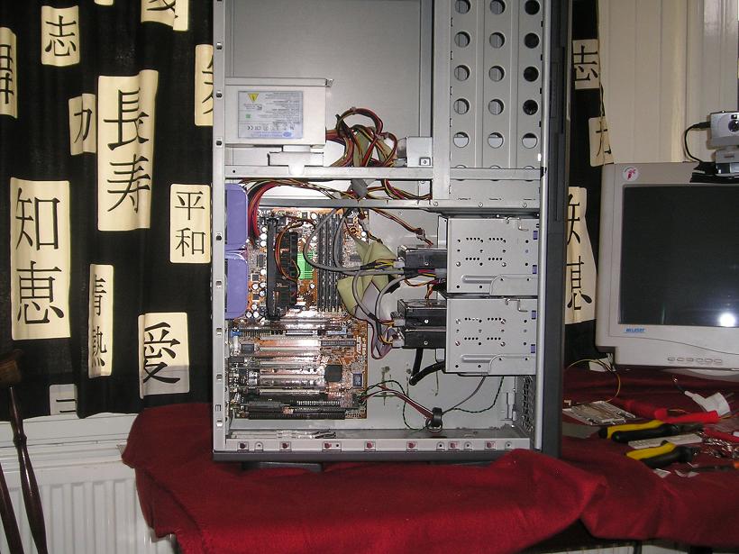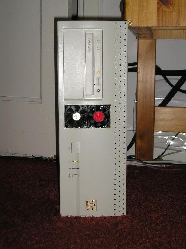 This picture is the very first incarnation of Bambi, my personal server. It is a old big case with modded fans for additional cooling.